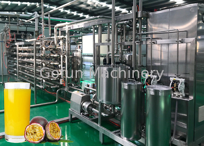 신선한 패션프루트 ⇒ 컨베이어 ⇒ 세척 ⇒ 선별 ⇒ 씨 제거 ⇒ 예열 (선택 사항) ⇒ 펄퍼 & 정제기 ⇒ 효소 가수 분해 & 여과 시스템 ⇒ 살균 ⇒ 무균 충전 ⇒ 보관 또는 혼합