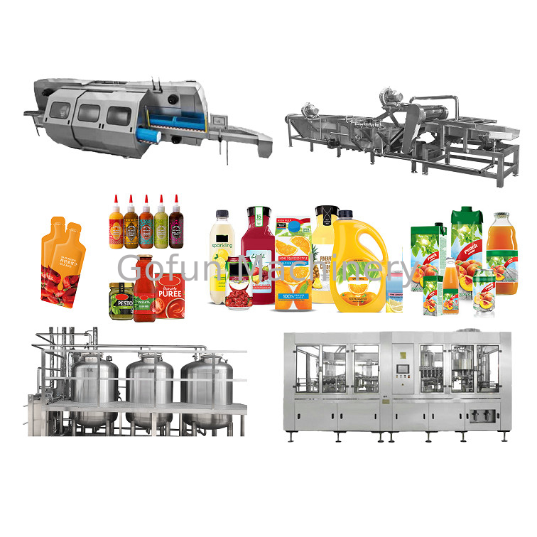 신선한 과일 및 채소 ⇒ 컨베이어 ⇒ 세척 ⇒ 선별 ⇒ 분쇄 ⇒ 예열 ⇒ 펄퍼 & 정제기 ⇒ 살균 ⇒ 무균 충전 ⇒ 보관 또는 혼합